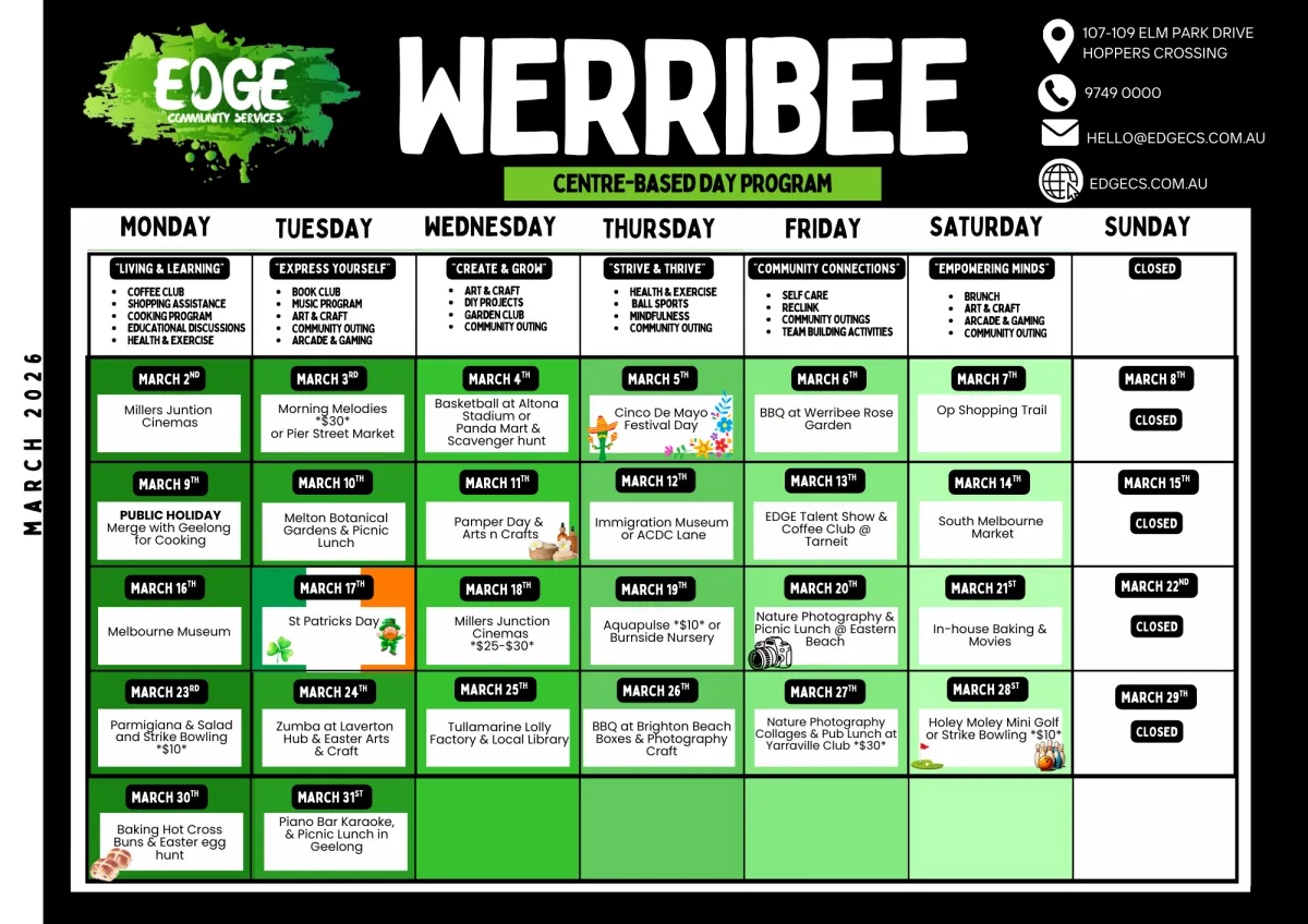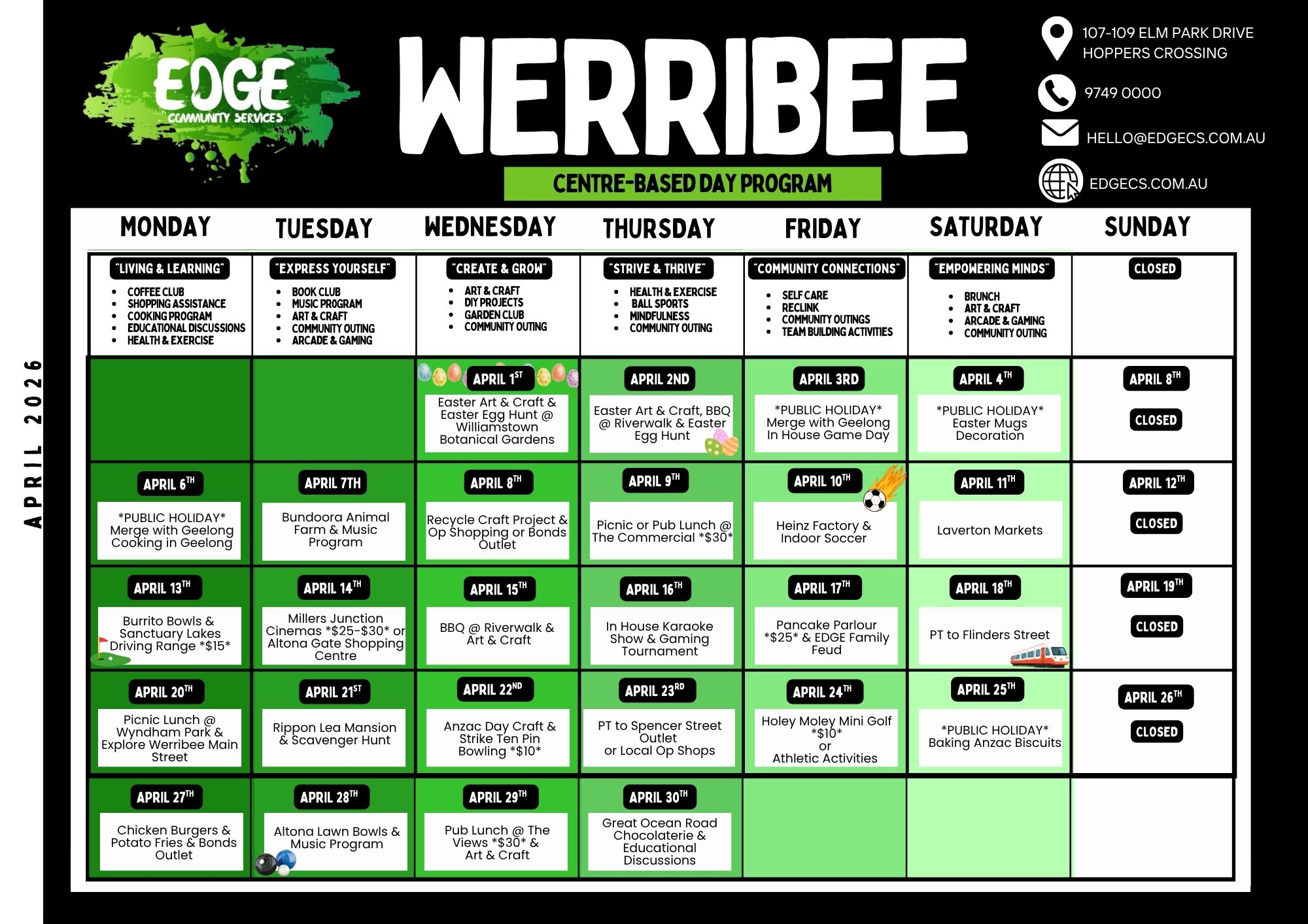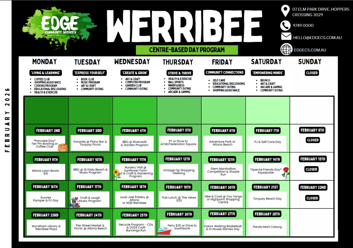 Find out what fun activities are running this month at our Werribee Centre-Based Program.