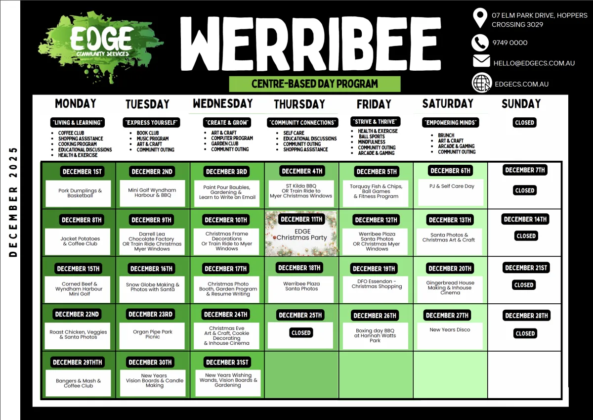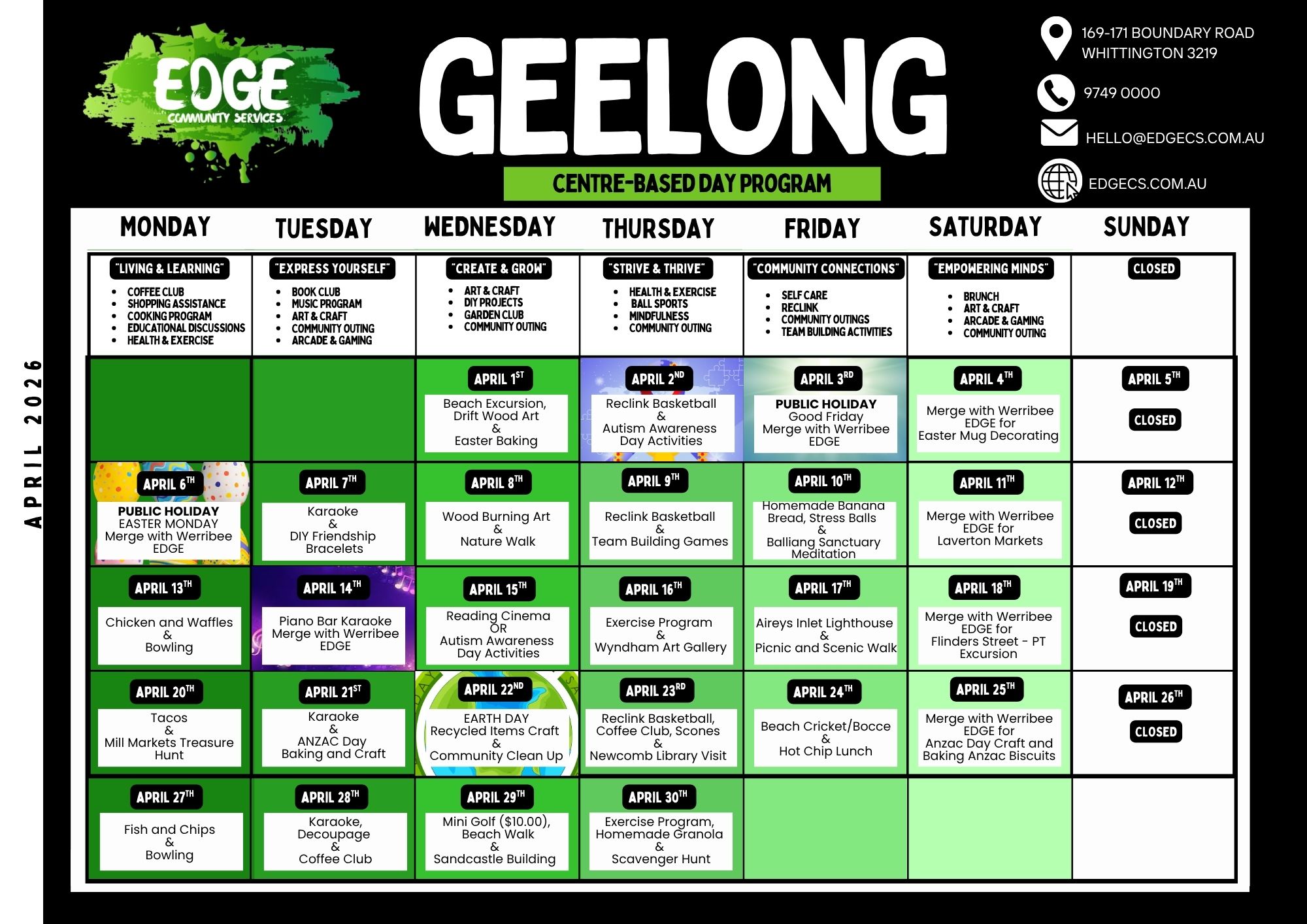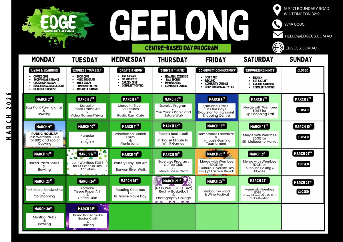 Find out what fun activities are running this month at our Werribee Centre-Based Program.