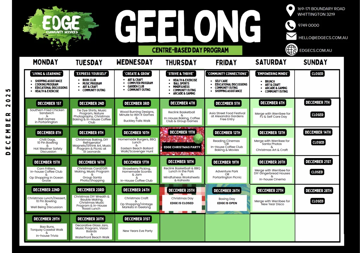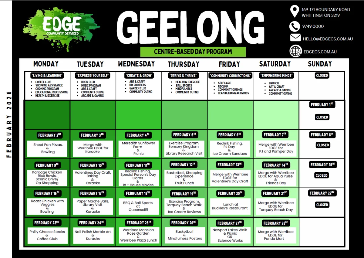 Find out what fun activities are running in in our Geelong Centre-Based Program.
