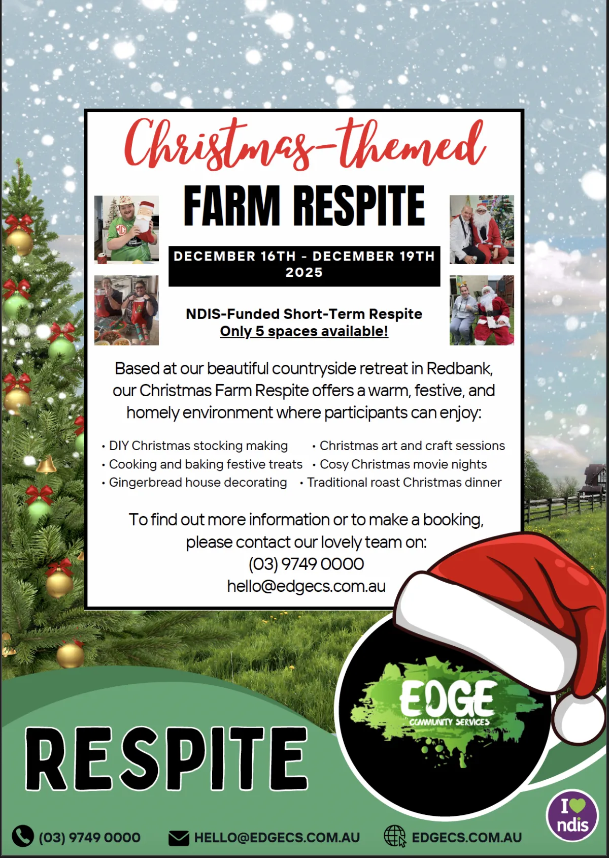 Find out what awesome Beach and Farm Respite Stays are running towards the end of the year.