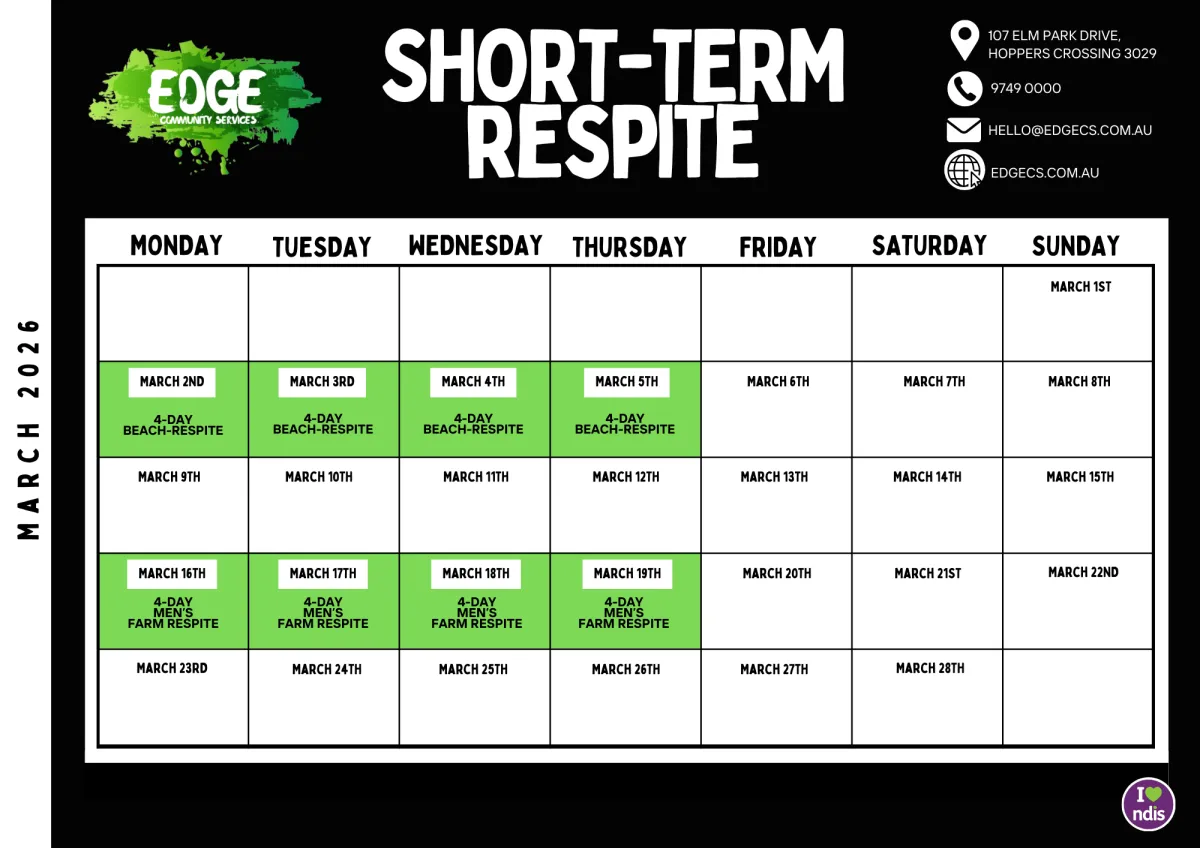 Quarterly calendars for our Short Term Respite Programs are released at the end of each quarter.